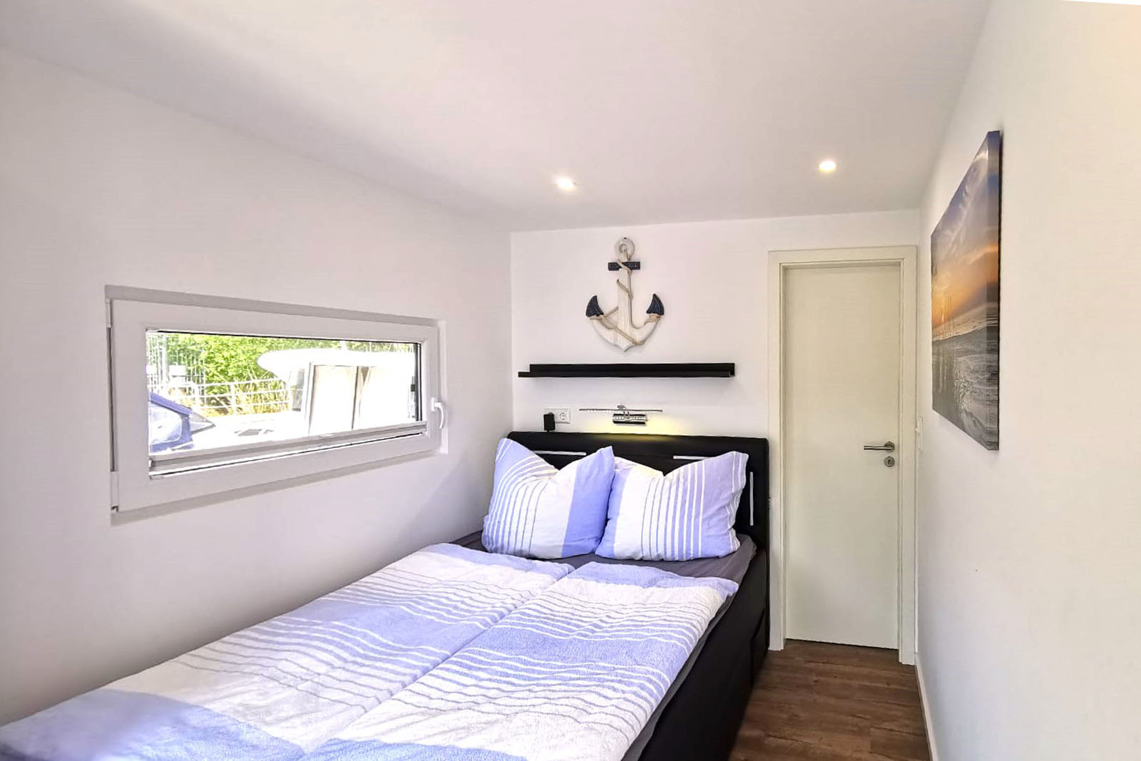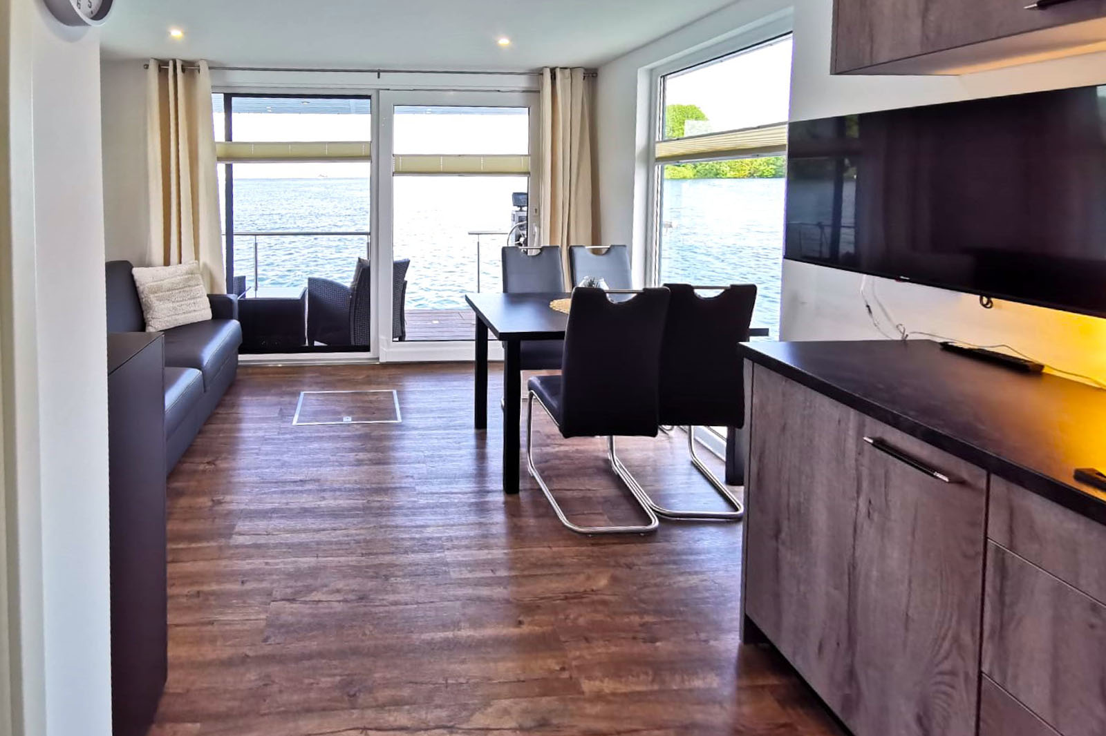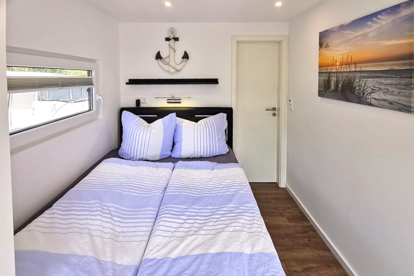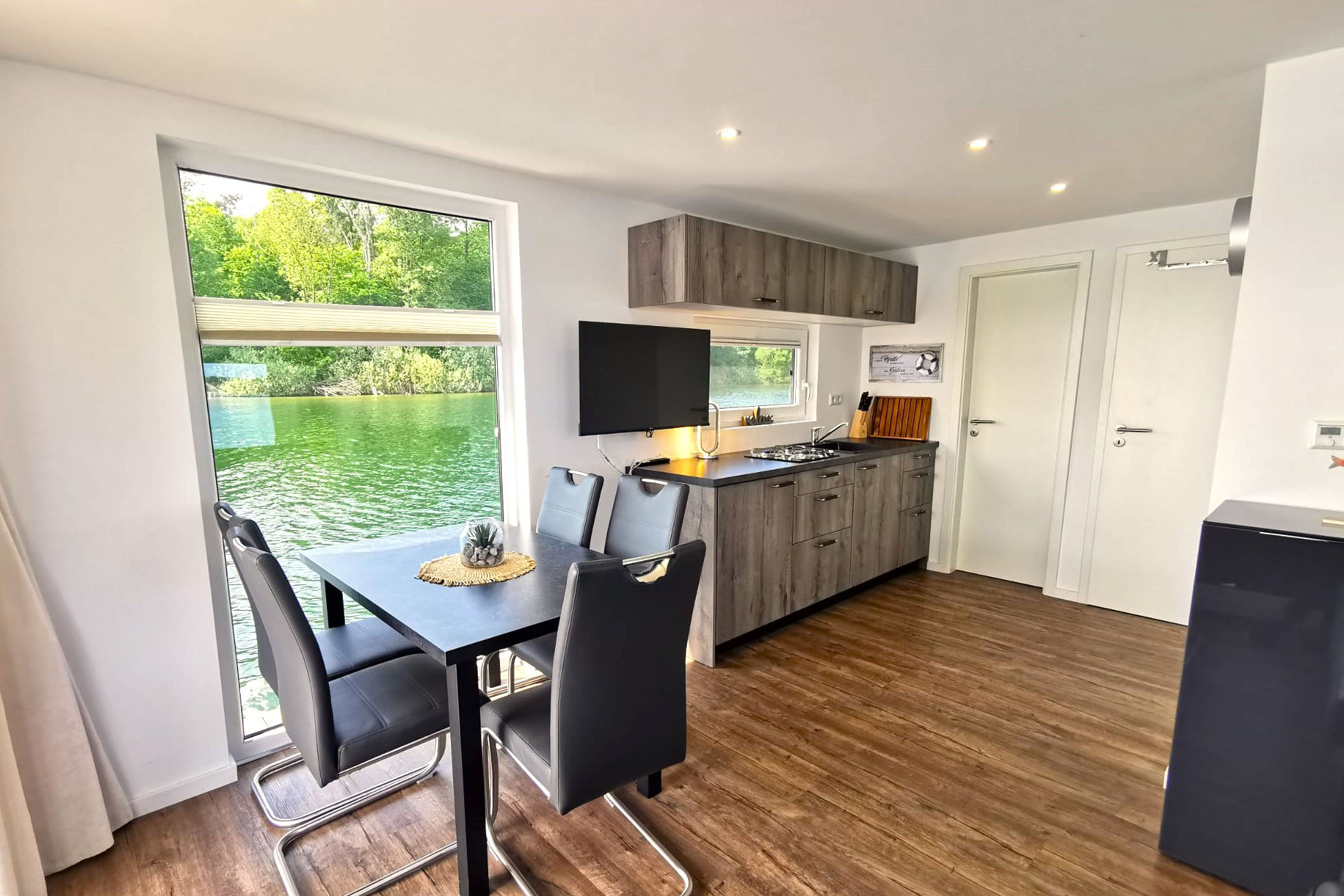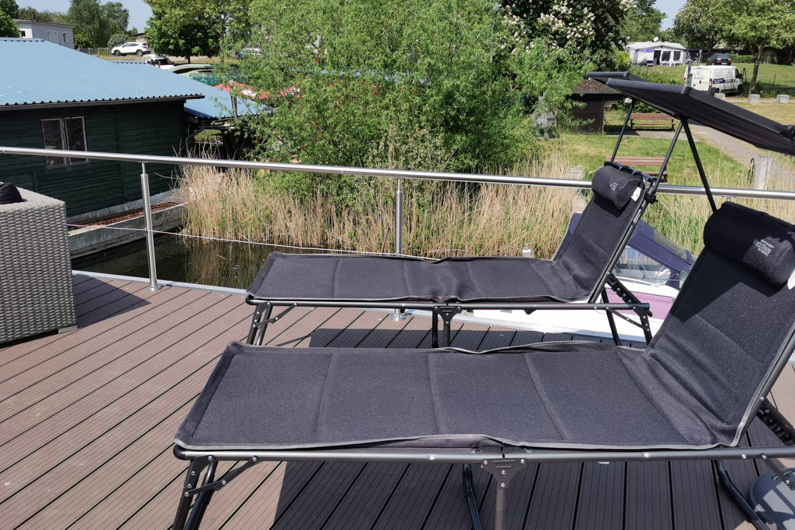 Die Bijou ist mehr als nur ein Hausboot – sie ist Dein persönlicher Rückzugsort auf dem Wasser. Ein kleines Juwel für Momente, in denen Du den Alltag hinter Dir lässt und Dich ganz dem Augenblick hingibst. Stell Dir vor, Du liegst vor Anker in einer stillen Bucht. Der See ist ruhig, leichter Morgennebel schwebt über dem Wasser und die ersten Sonnenstrahlen fallen sanft durch die großen Fenster an Bord. Während in der voll ausgestatteten Küche der Kaffee duftet, hörst Du nur das leise Plätschern der Wellen – ein perfekter Start in den Tag. Die zwei gemütlichen Schlafkabinen bieten Dir und Deiner Familie erholsame Nächte: Im Schlafzimmer mit Queensizebett wachst Du entspannt auf, während sich im zweiten Schlafzimmer mit Doppelstockbett kleine Abenteurer auf den nächsten Badestopp freuen. Ein ganz besonderer Lieblingsplatz ist die großzügige Dachterrasse mit bequemen Loungemöbeln. Hier genießt Du sonnige Stunden über dem Wasser – und wenn der Tag sich dem Ende neigt, wird es magisch: Die Sonne versinkt langsam im See, der Himmel leuchtet in warmen Farben und Du lässt den Abend ganz entspannt bei einem Glas Wein ausklingen. Dank starker Motorisierung, Bug- und Heckstrahlstrahlruder und Echolot steuerst Du die Bijou sicher und mühelos – auch ohne viel Erfahrung. So bleibt Dir mehr Zeit für das Wesentliche: das Ankommen, das Durchatmen, das Genießen. Die Bijou ist wie gemacht für Familien, die gemeinsam besondere Augenblicke erleben möchten – naturnah, entschleunigt und voller Gefühl. Ein schwimmendes Zuhause, das Dir unvergessliche Erinnerungen schenkt. Zum sicheren Manövrieren (Schleusen) und Fahren außerhalb unseres Haussees (Röblinsee) wird ein Team von mindestens 2 Erwachsenen (körperlich handlungsfähig) benötigt. Bereits vorhandene Hausbooterfahrung (mit oder ohne Binnenführerschein) ist wünschenswert.