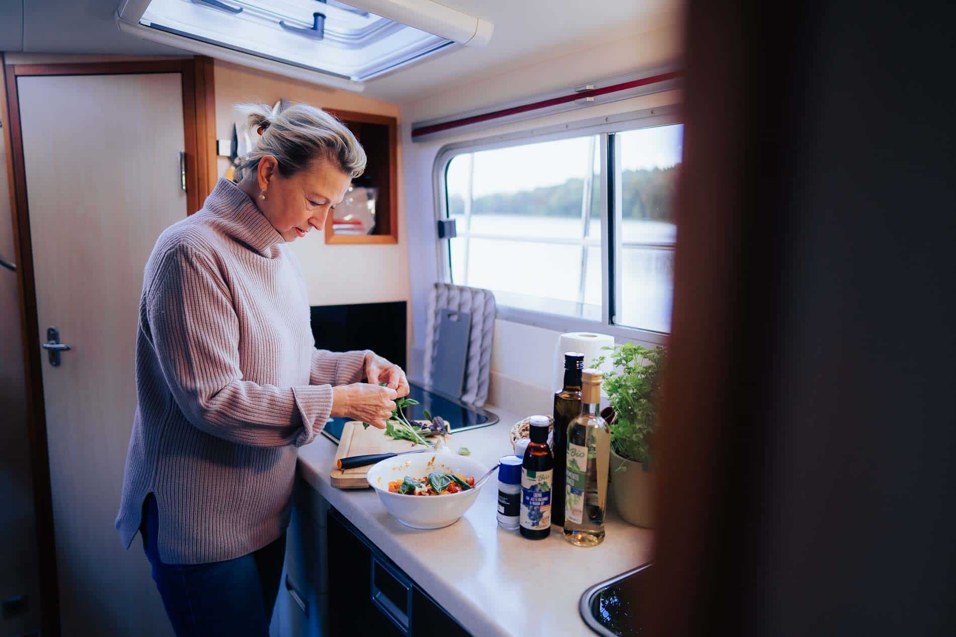 Nehmen wir mal an, Deine Frau oder Dein Mann möchte im Hausboot Urlaub in Deutschland auf nichts verzichten. So wie Erhardt, der einfach die Küche seiner Frau Sabine sehr mag. Er kocht auch selbst gern, nur damit es keine Missverständnisse gibt. Beide lobten die Ausstattung und unsere Küche an Bord. Es fehlte an nichts. Nur eines, eine Knoblauchpresse, die wir prompt an Bord brachten und in unsere Ausstattung aufnahmen.